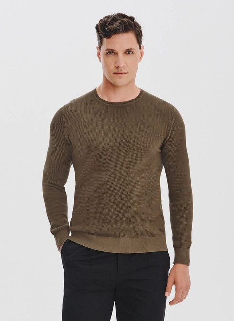 Rusvas vyriškas megztinis su O apykakle