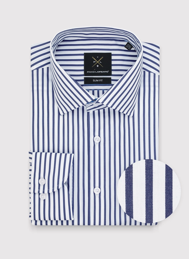 Medvilniniai vyriški marškiniai tamsiai mėlynomis juostelėmis