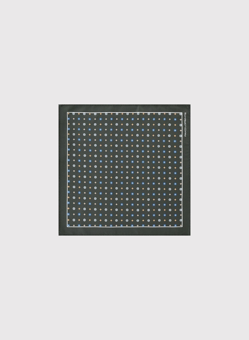 Tamsiai žalia vyriška kišeninė nosinaitė peislio raštu