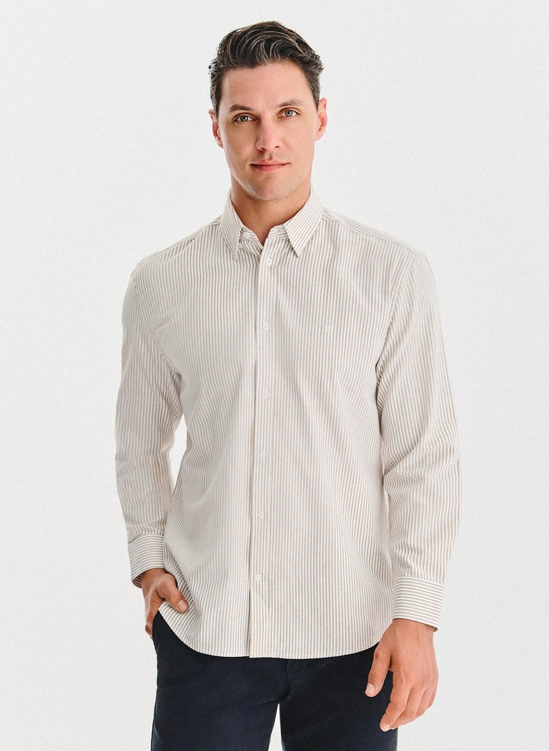 Smėliniai vyriški marškiniai juostelėmis