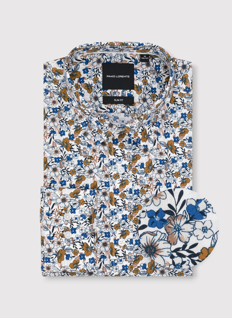 Balti gėlėti marškiniai