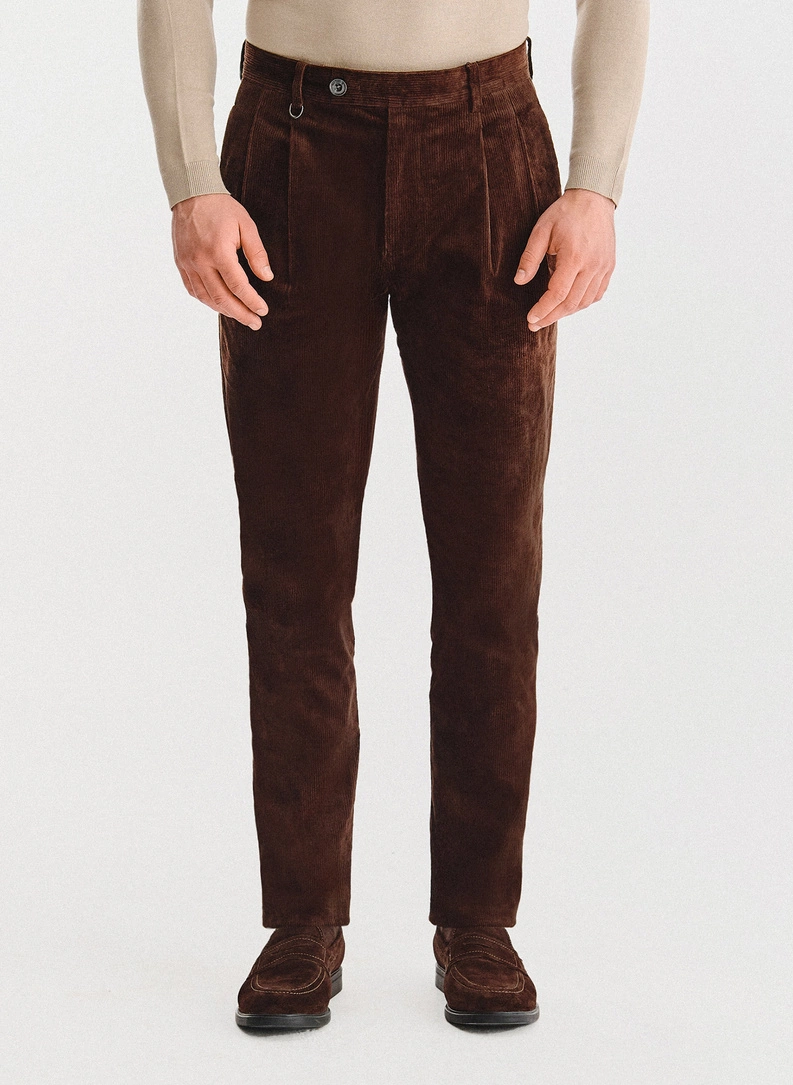 Rudos kelnės su klostėmis