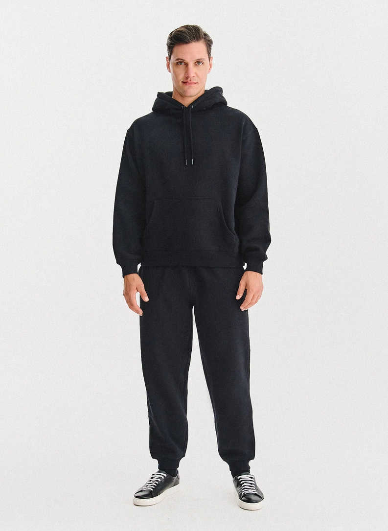 Juodas vyriškas treningas su bluzonu su gobtuvu