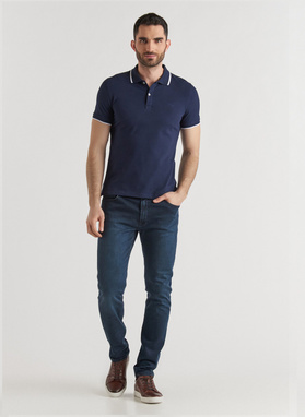 tamsiai mėlyna